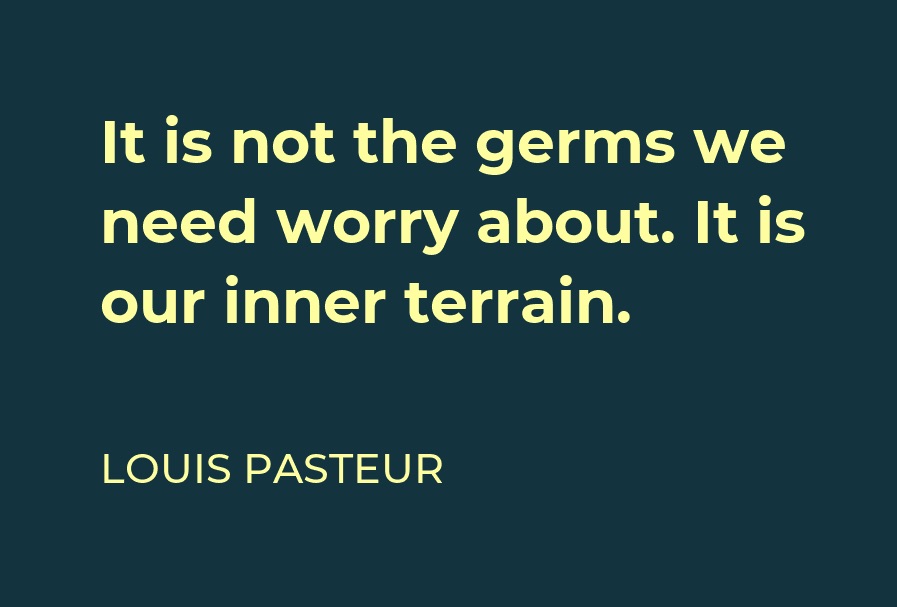 Most of us are probably familiar with germ theory. Microorganisms (bacteria, viruses…) make us sick. Mr. Pasteur was a strong proponent of the germ theory but is said to have recanted with the above quote on his deathbed.